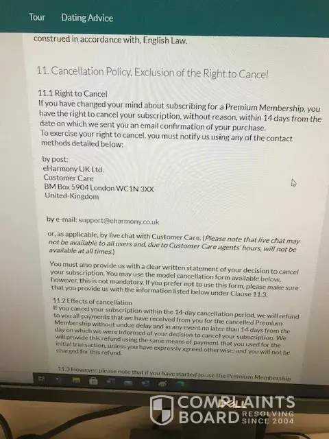 I decided to give Eharmony a try on Friday, 10/09/2021. On Monday, 13/09/2021, I emailed them to tell them that I wanted to cancel my subscription as it wasn't for me and because I was in my 14-day cooling-off period, I was entitled to do that without charge.