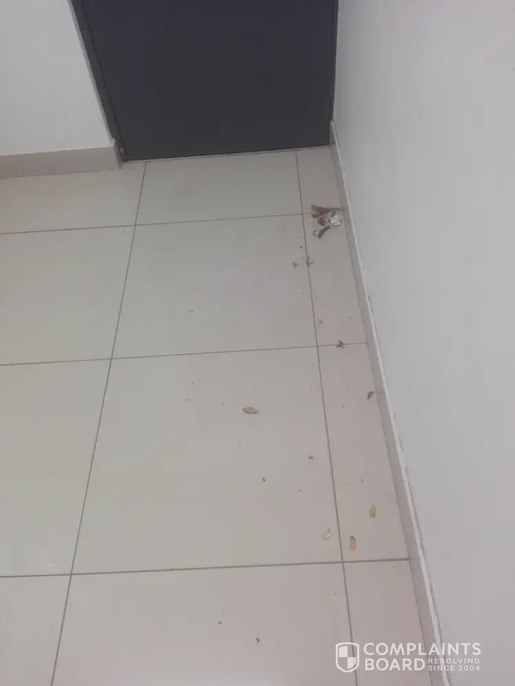 7. The front reception is filthy and was not swept