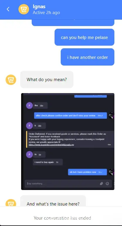 Even after all this, the seller marked my order as completed and delivered. But I have proof that it wasn't completed! So, I decided to reach out to Eldorado's customer support for help. And let me tell you, I was sorely disappointed. They did everything but support me! Instead, they acted like they were there to do anything and everything for the sellers. They refused to refund or cancel my order, even though it was clearly not completed.