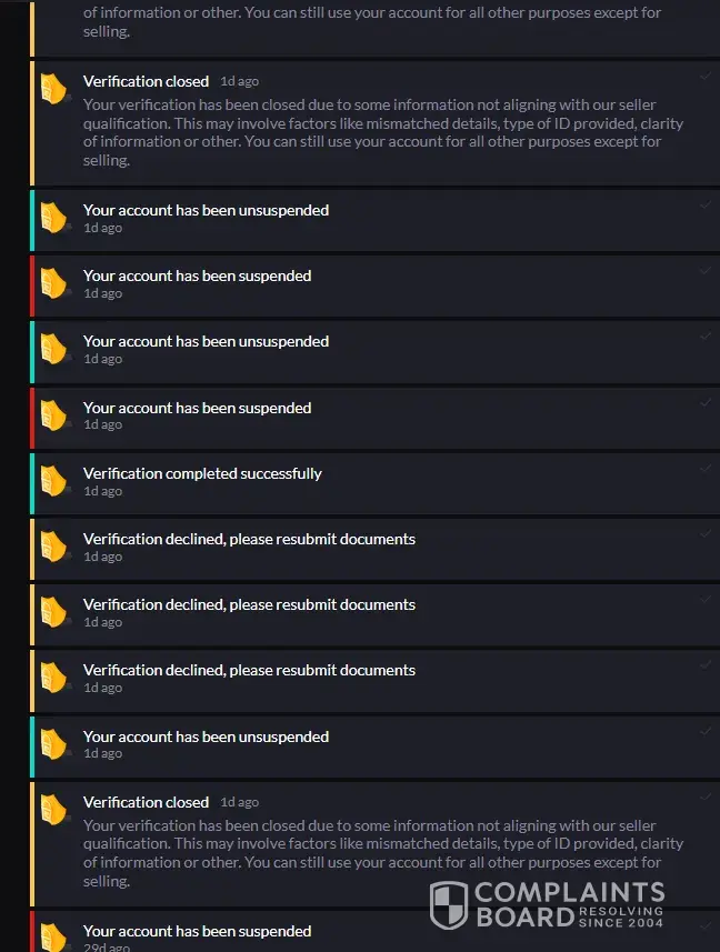 I have suspensed for no reason and when i sent to them they tell me the same message and after that ignore me i have many sell orders and have proof for that don't deal with site and They did this with more than one seller to make their money work, and their treatment was very bad and I have all the evidence.this site very bad and coustomer service also very bad