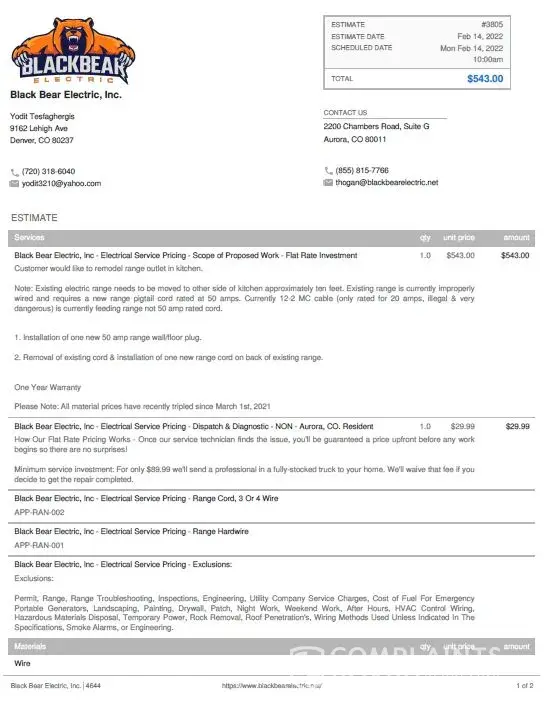 Read full complaint and 2 commentsBlack Bear Electric - Harassment