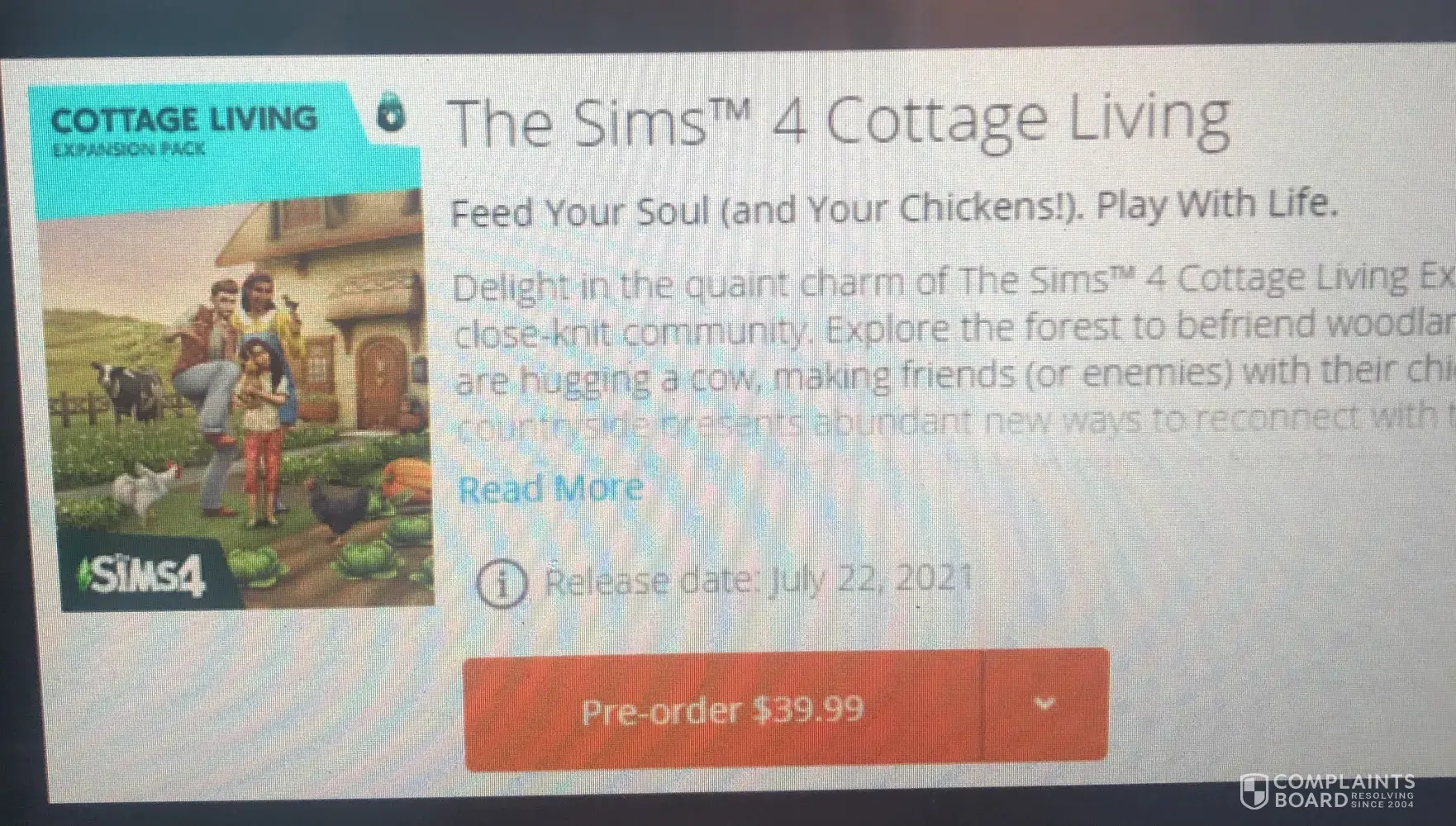 On the Sims 4 Marketing Headline, you show the Cottage Living Expansion Pack that will be released July 22nd.