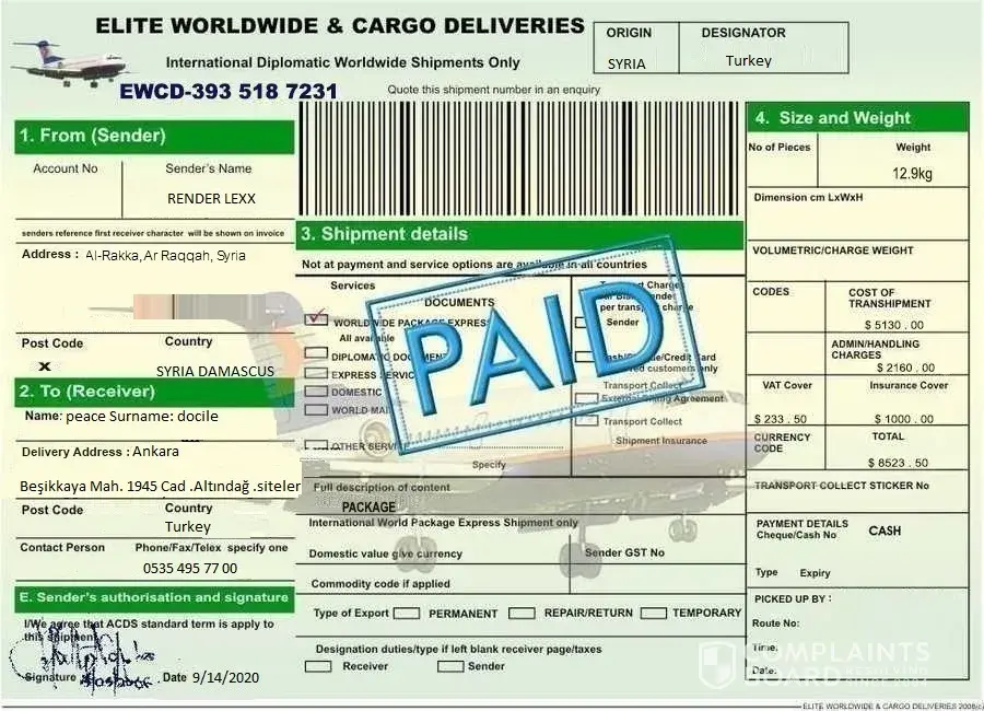 Elite Worldwide & Cargo Deliveries DolandiriciK ve dolandirma