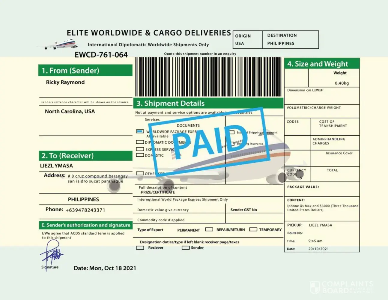 Elite Worldwide & Cargo Deliveries Iphone ,cash and how is true or scam