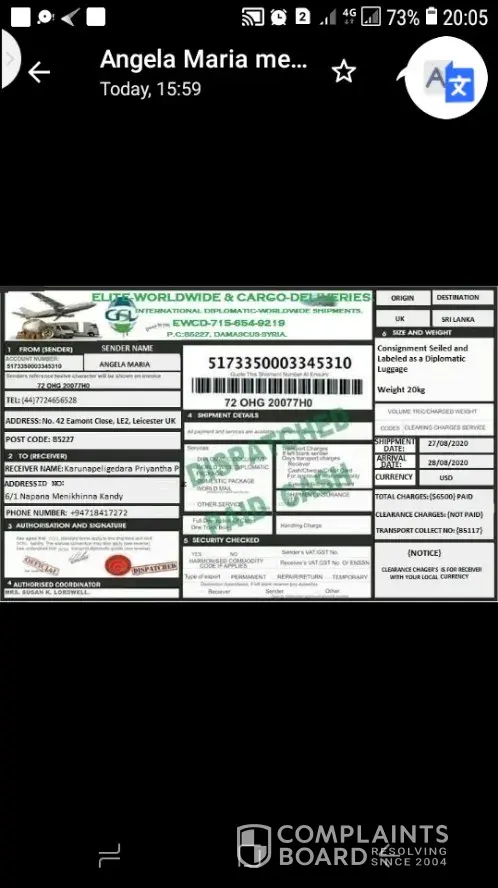 👉  Submit a complaint about Elite Worldwide & Cargo Deliveries
