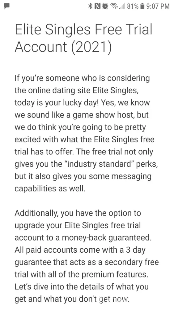 Everywhere you search on web, you read you have right to get a refund after 3 days of paying(no fine print)..simply if not satisfied reach out to cancel I did that after 24hours! Poor quality "elites" as advertised, poor matches and many technical issues..when I emailed to refund my 129$, they refused because apparently I sent a message to one of members that they suggested was a match?! What? They said it was void after that. I likely didnt even mean to press send because the texh glitches !regardless, how is that standing by their commitment they have advertised. If I followed link to free trail why would I be able to send a message anyway? That is just scamming people.I am a single mom and not being ripped off 129$ for browsing to see if a product is right for me. You cant even contact by phone and only wait till they email you back. This is so wrong and I want my refund immediately!