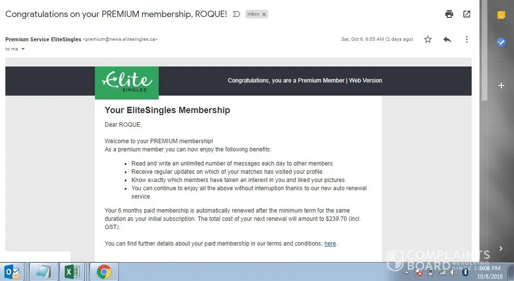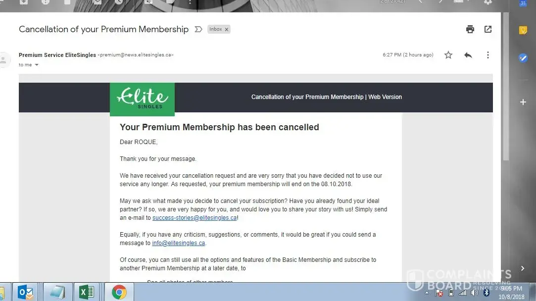 To my dismay when I logged on to my personal account to check for the new password link, there was an email from elitesingles stating that "I have cancelled my subscription" and I received this email about 4:30pm (Berlin Time).