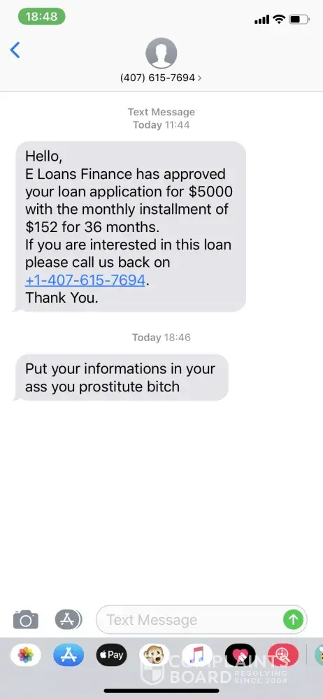 We should all get together and file a class action lawsuit against the real company Eloans because their systems have been breached and hacked and your real information is out there when I declined the loan I was sent a nasty text message and harassed severely. If anyone is interested email me at Lcarder64@gmail.com subject line Eloans class action suit.