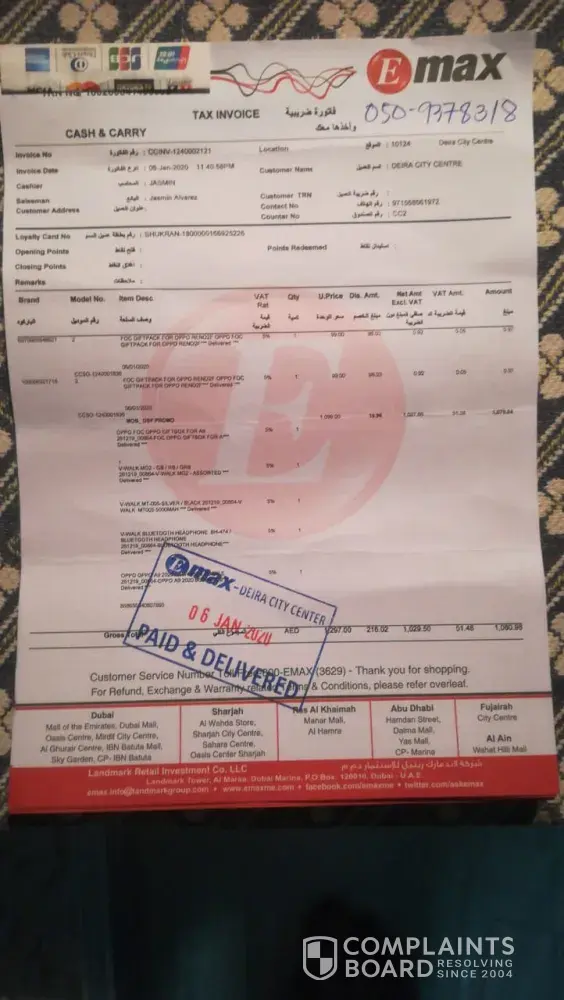 I purchase mobile and they mentioned they will provide freely airbuds but they had out of stock. 31/7/2020 on I purchased huawie nova 7 5g from al wahda e-max showroom and they mentioned free huawie foc freebuds lite in invoice. But still I did not received freebuds. From the showroom they told me to come after 2 days, I visited after 2 days, but still they dont have. Again they told me to come after days and again the same. Many times I visited e-max showroom but no proper response.