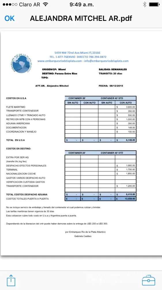 En nero del 2017 envÃe a argentina, por medio de la empresa embarques rÃo de la plata... En el transcurso del año llamaba periódicamente, me decÃan que no podÃan enviarlo por problemas con la aduana en argentina... En octubre me dicen que el barco ya salió... Pero hasta hoy 7 de diciembre no tengo ninguna novedad... Todo lo que tenia se fue en esa...