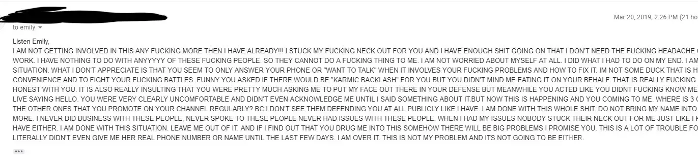 Where is your proof so everyone can see these emails between you and emily come on proof ? Me personally you havent got any thats why you havent put it up. .