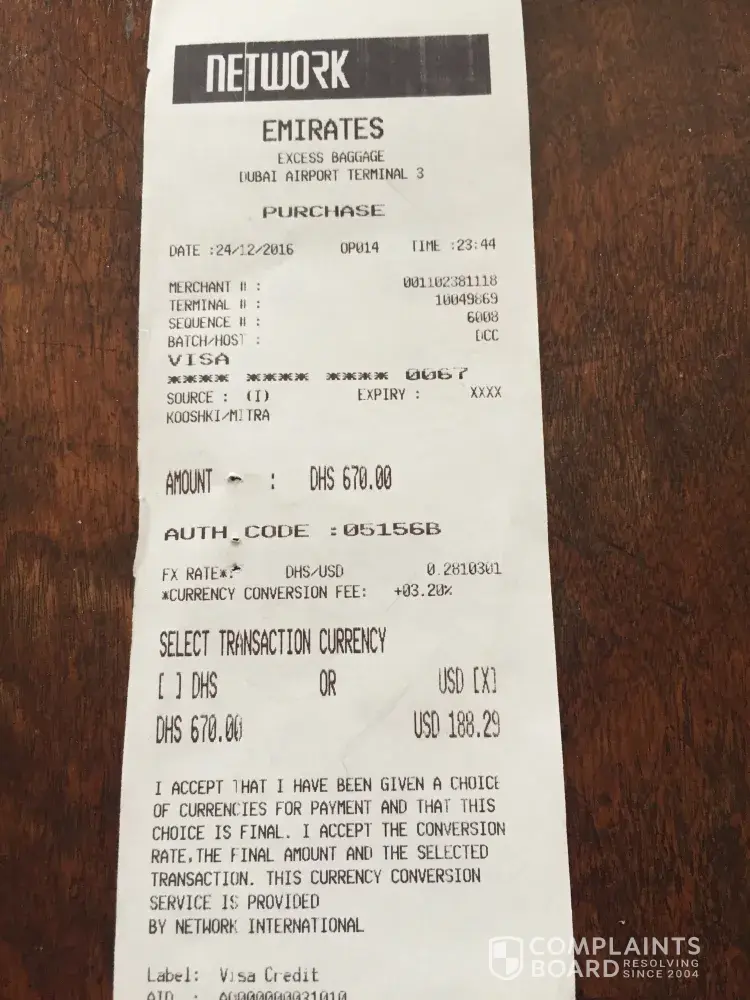 This is an actual complain concerning “emirates baghdad – iraq office “,