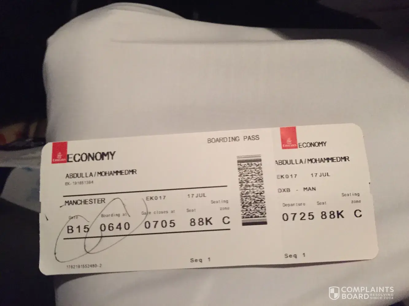 This is with reference to my recent travel through emirates from karachi-dubai-milan.