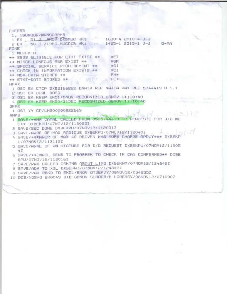 On november 8, 2012 I booked in emirate airline from dubai to germany in business class. But I missed the flight no. Ek51 when I reached the airport I re booked another flight in the same date and paid extra charge 800 aed. According to emirate airline rules with this flight transport was provided for business class customer and also airport authority mr. Kamal told me that it will provide me transport facility in germany and also added that mr. Kamal sent an email to emirates office in germany for transport but when I reached there was no transport available waiting for me. I asked airport authority in the germany they told me that there is no facility updated in the system. After that I went to hotel by taxi and paid 110 german euro. Alternate transportation was made at our own cost with the understanding it would be reimbursed.