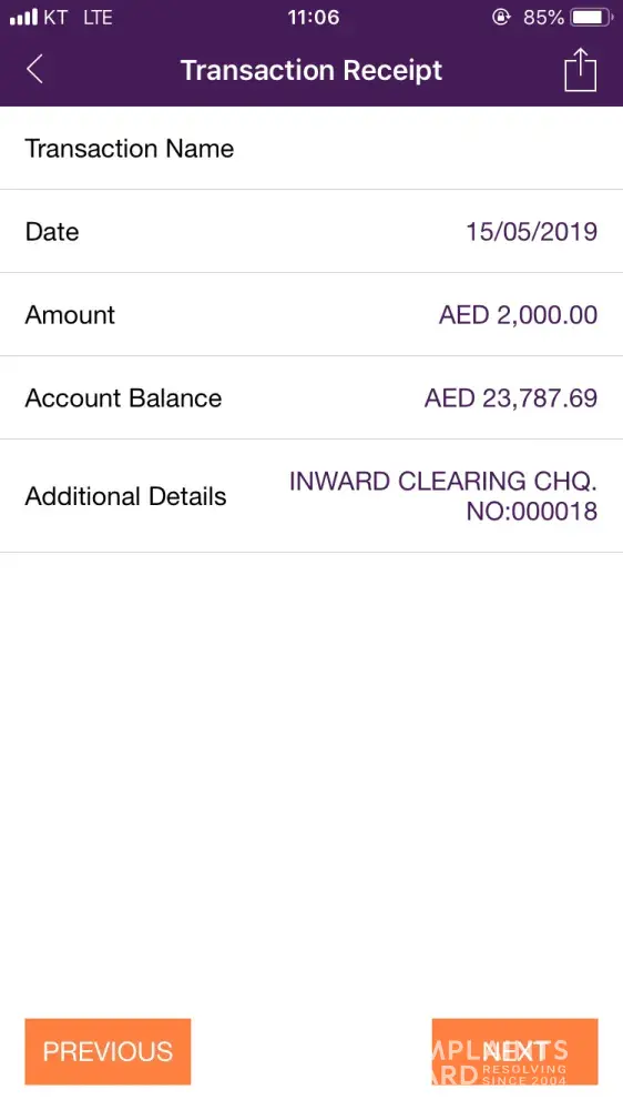 Yesterday 15 May someone withdrew 2000 AED from my account by issue cheque 00018,