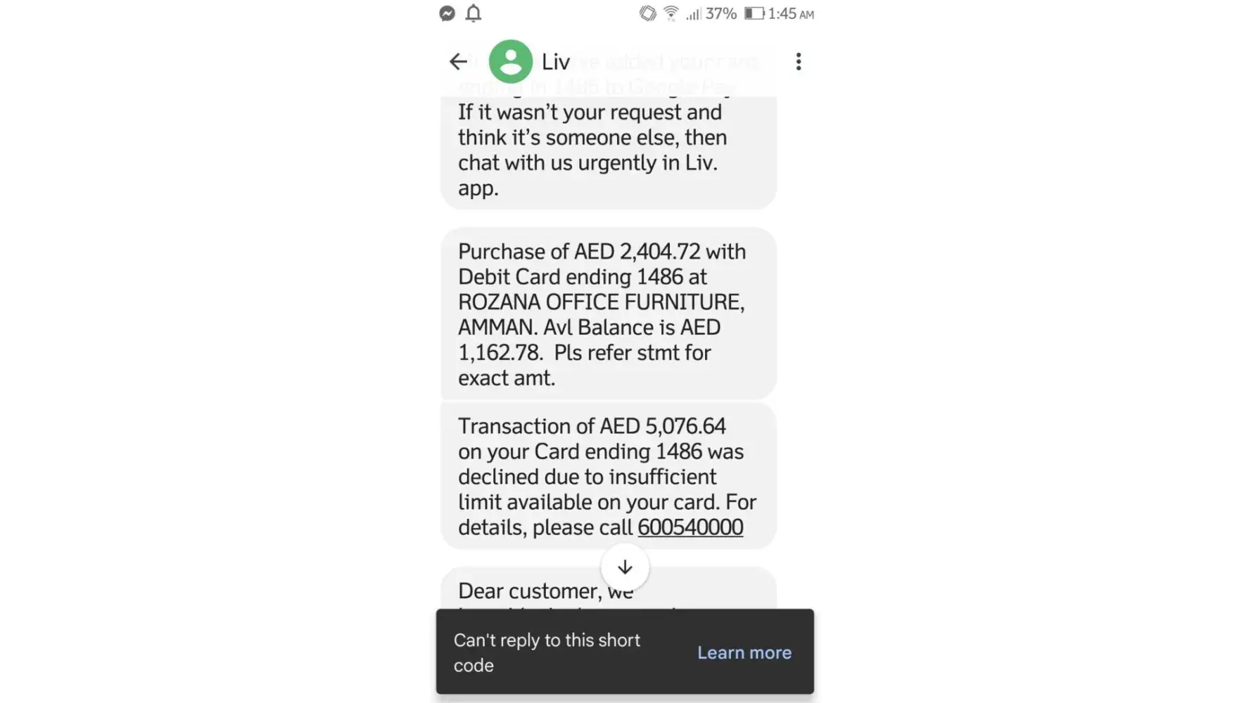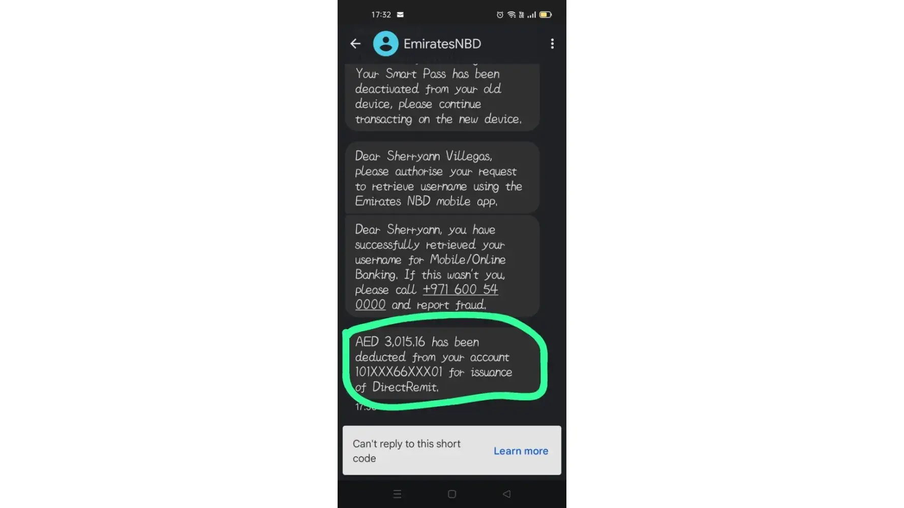 As per my latest conversation with Emirates Bank this is the feedback I received from them Thank you for contacting us, the result of the dispute was this: Disputed transactions done through Google Pay, post authenticating the cardholder identity, wherein cardholder will be liable for all Secure and Authenticated transactions. Card Holder must pursue case with the Police. It was not by your mobile number that is invalid, that caused these charges. Please file a police report. Thank you.