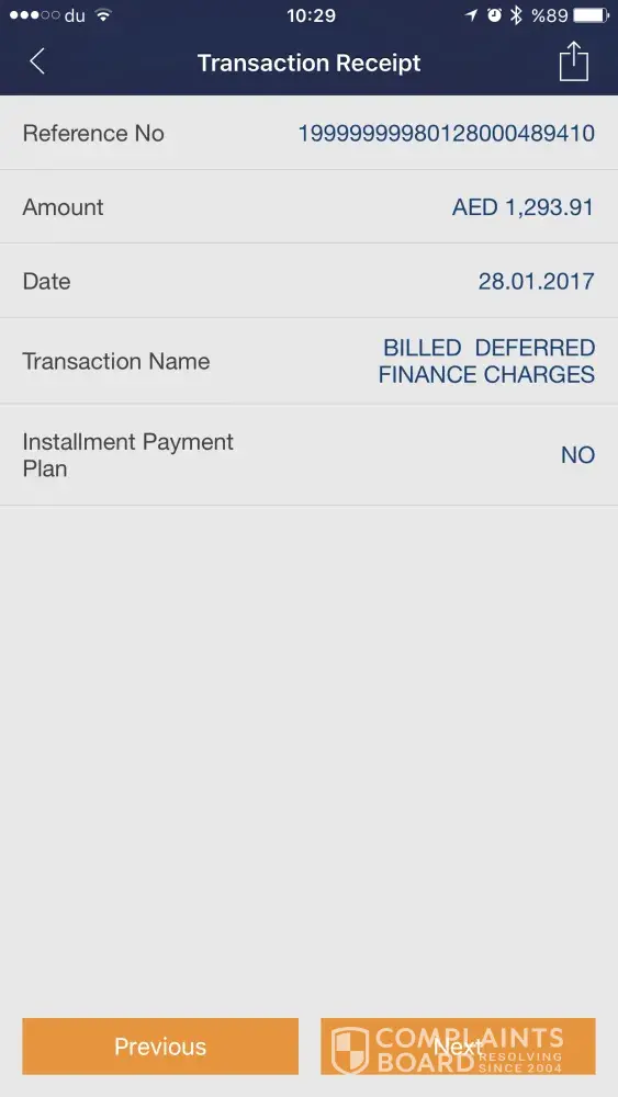 2. Charged Late fees and Finance charges for a one day delay totaling about AED 750/- (payment was made on last due day, amount reflected on their statement as next day)