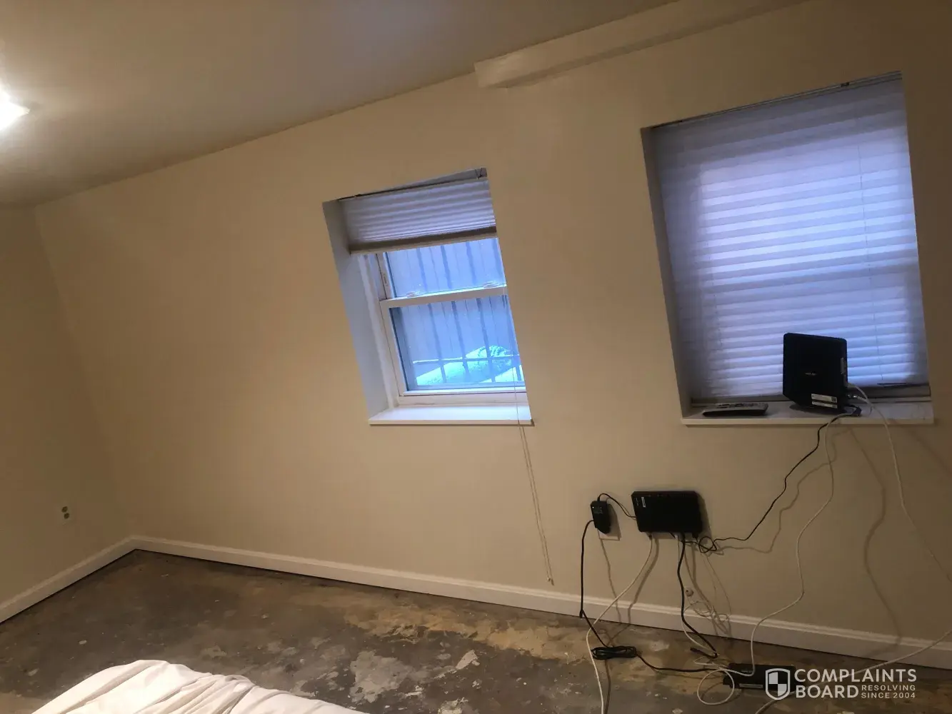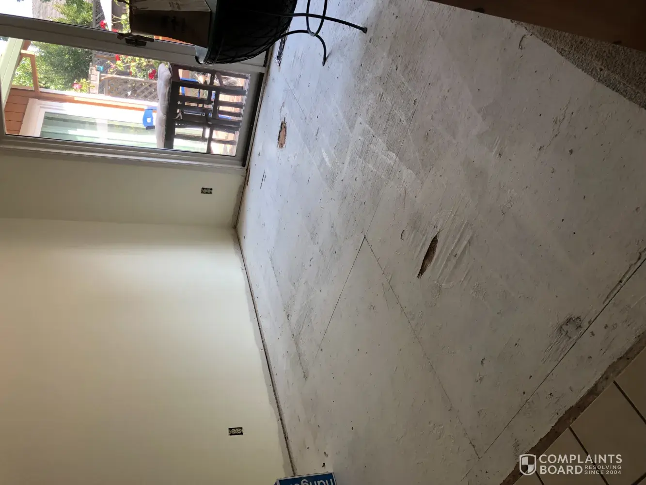 On May 25th, installers came out. I was in the process of replacing drywall because there had been a small leak. The carpet was dry and the drywall had been repaired. The installed proceeded to rip up the carpet in the bedroom and take it out of the apartment, leaving it outside on the walkway. When they concluded tearing up the bedroom, they said it might be better to let the drywall repair dry more because there was moisture in the air and it would be better for the flooring to wait a few days. They assured me they could be back later that week to finish as I was having family come into town.
