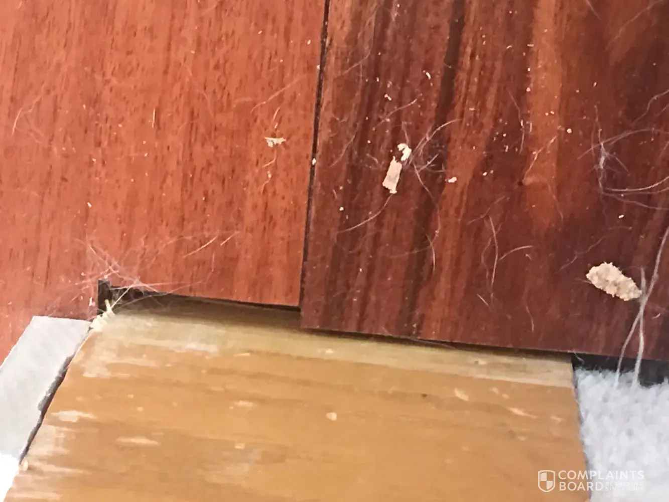 Several Nails sticking up where people can get hurt, nails all over the floor, dents every four inches from hammering, several holes where no floor is, ruined closet, dents in the walls. This list goes on and on.