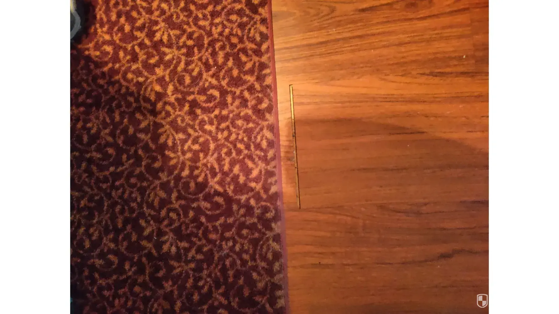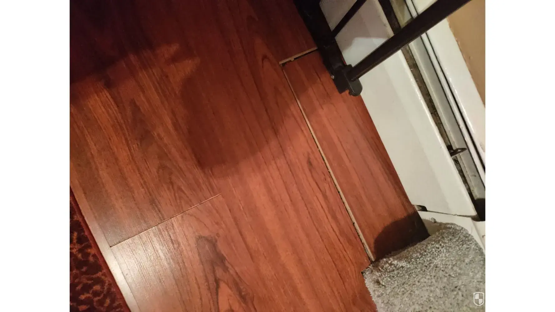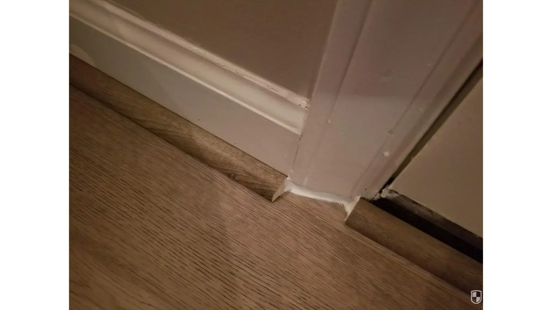 Flooring was not completed. Trim was left off and blue padding is showing all over the place.