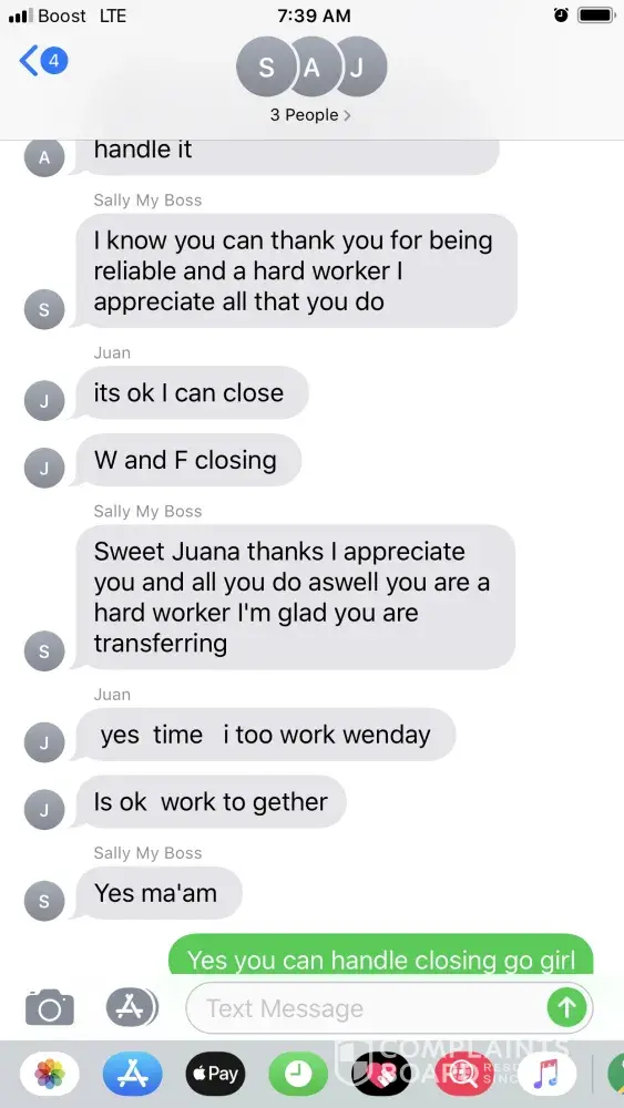 Hi ever time I say anything different or say hey it supposed to be 2 people working on friday and saturday its a problem I talk to my dm which made her change it but now she wrote message that i'm tagged in taking about me I thought since the dm said change it right... She even make racist comments to me and want me to laugh about it. But since I made a...