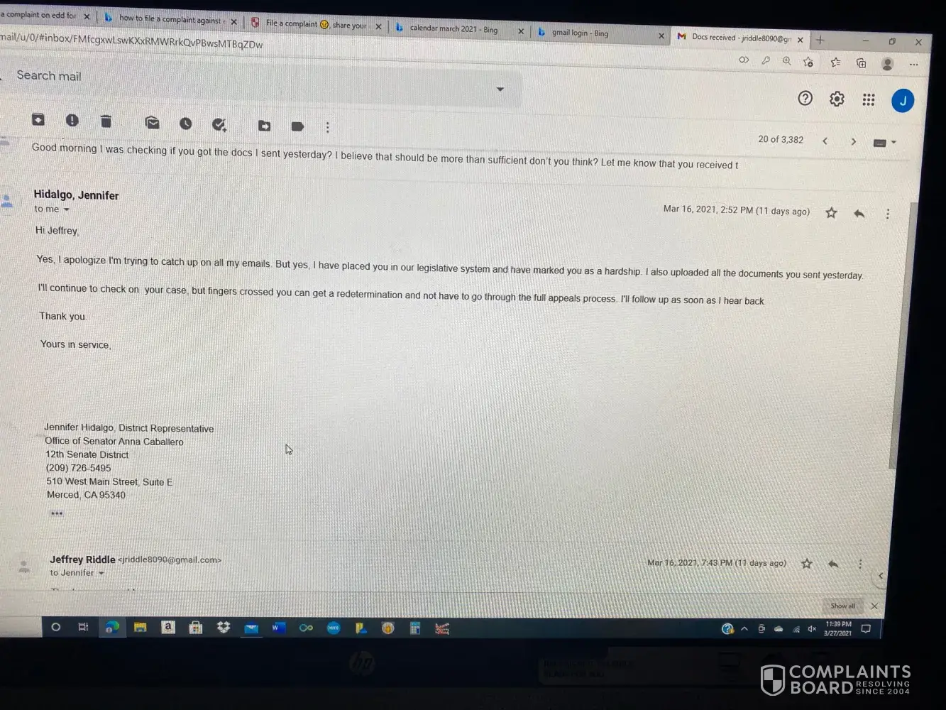 My name is Jeffrey Riddle and my reason for this complaint is it's been 14 weeks since my last payment from EDD. It has cost me everything, I have no income and my bank account is at negative $63.00. This is all because of their ID me launch to prevent fraud that more closely resembles a joke that's on me and has drastically affected my son and I and our way of life. I understand the necessity of such procedures and the absurd amount of fraud that has evolved around this Pandemic, but 14 weeks is completely untimely and I'm still told to wait as or Friday 03-26-2021. On approximately January 1st 2021 I noticed a required ID me link on my active unemployment claim and responded promptly. After about two weeks my claim was changed to disqualified and to the present date I still was never issued a denial from the EDD or provided a appeal to dispute the disqualification which is against their protocol and is my right if I'm not mistaken. After literally hours and hundreds of phone calls I was told my documents provided weren't acceptable specifically my secondary document. I uploaded the county provided birth certificate accidentally and it has cost me to say the least. Immediately after talking with the representative I printed off my own appeal form and sent it certified mail along with copies of my drivers license, state issued birth certificate, bank statement and social security statement to the EDD headquarters in San Francisco all in an effort to avoid delays with my unemployment claim. After months of waiting I know that my file sits at the Fresno office of appeals and has yet to be processed. I've contacted my district 12 representative and they uploaded all the above mentioned documents via their legislative portal to EDD. I'm given 10 or in some cases 30 days to respond in a timely manor as the EDD puts it yet after nearly 98 days I still wait on them to accept that I'm me by the paperwork I submitted which is far beyond timely and has left an extreme hardship for my son and I. I've been treated rudely by their under trained, uneducated employees who are still getting paid and I've worked my whole life and paid into the EDD system and more then qualify for the assistance yet I have lost everything I've worked for due to their lack of appropriate response time and quickness to jump conclusions. Fingerprints seems like the logical way to verify ones identity and if that was the required method could have avoided this whole mess in the first place. Attached you'll find correspondence with the senators office and verification that they uploaded the documents. Thanks You for your time in regards to this matter. My contact email is [protected]@gmail.com