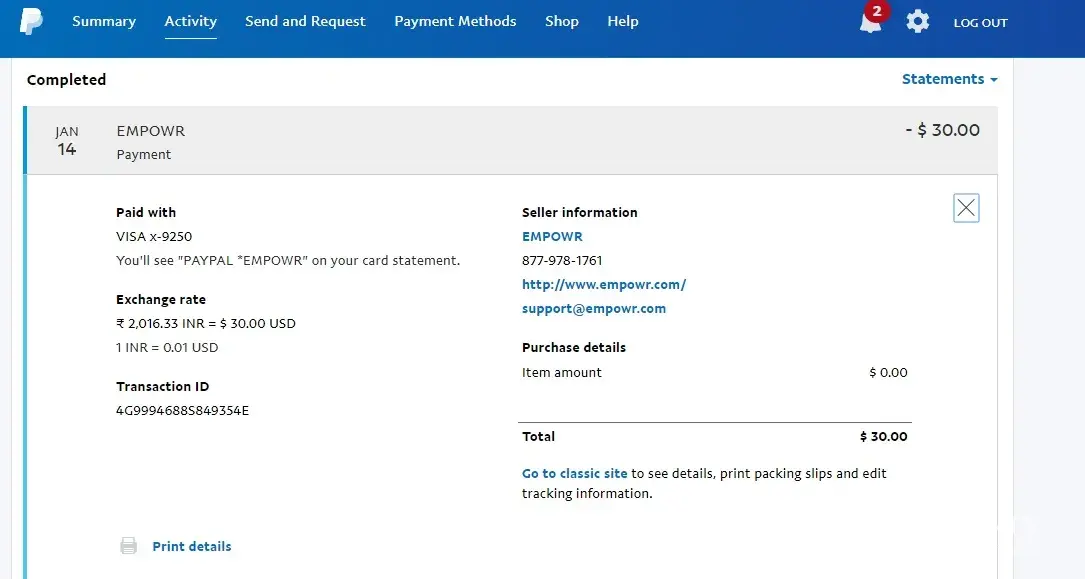 I had got on my online banking account last night and had a pending transaction of $30.00 from PayPal *empowr. Never heard of this, I do have a pay pal account but I don't ever use it ! But I have never heard of empwr. And I want my money back ! It must be a scam or something that hacks into your account from PayPal ! I'll be deleting my PayPal as well!