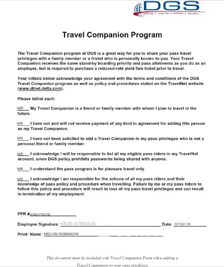 1. Background: No Delta employee can sell or let someone use a companion pass or employee pass.