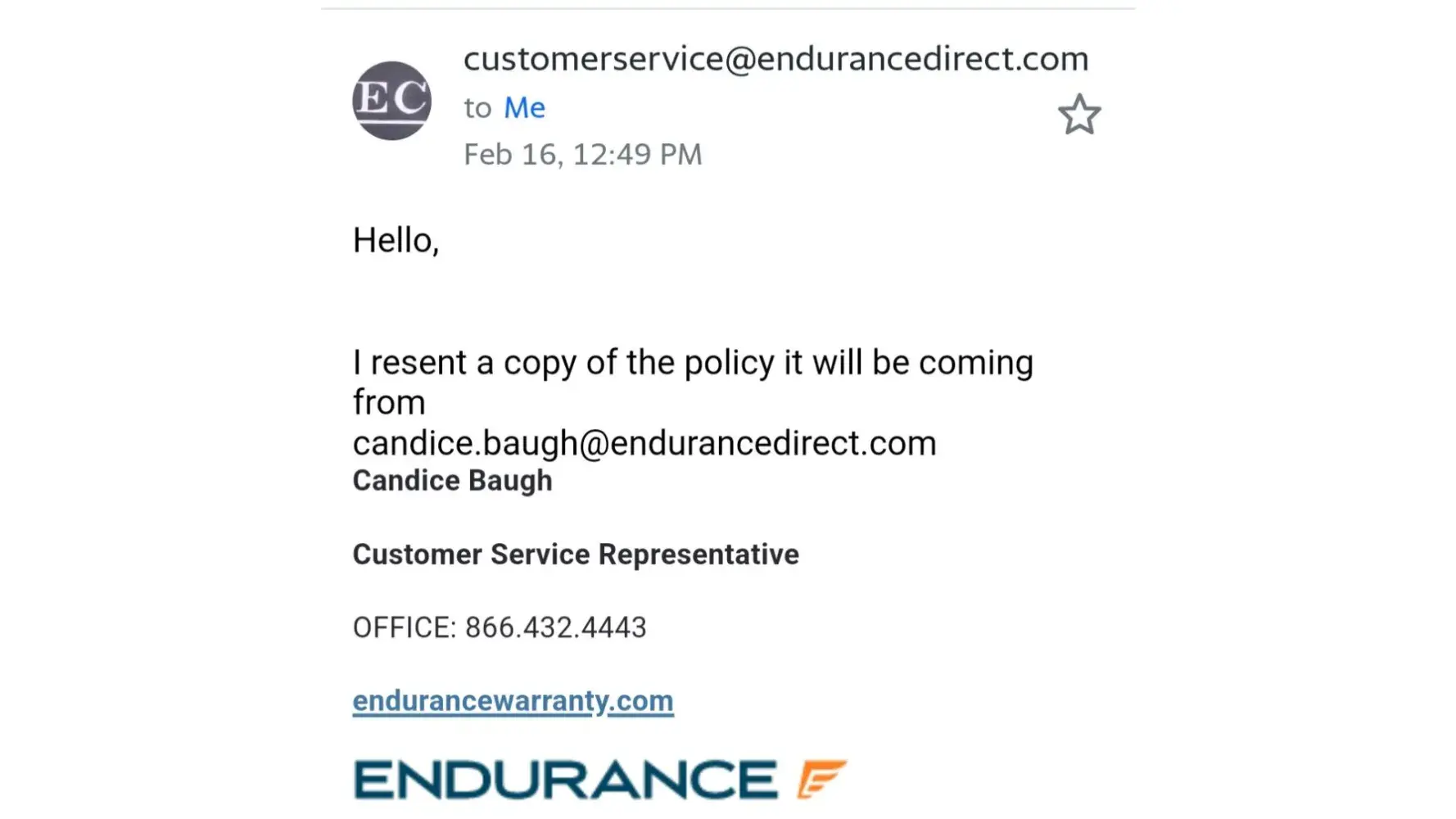 So, I called Endurance to inform that I was going to need to have mechanical work done with my Secure Plus plan. They told me to take the car to a mechanic and present them with the policy.