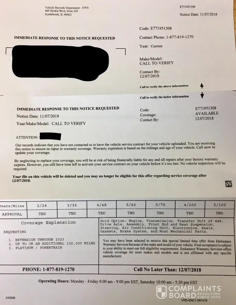 I won't go into lengthy details on my negative experience with this company, but they are liars through and through, and conned me into purchasing an extended warranty, after I called the provided number in a letter I received, even though I repeatedly told them over the phone that I had purchased one from my dealer when I bought the car. They set up a recurring payment schedule, even after telling me the price increase on the warranty was a one time charge and that there would be no more. I got my credit card company involved and got the C.S.R. on the phone, after repeated attempts, to send me a cancelation form because I threw a word salad back at him that he couldn't repond to. These stupid people sent me another letter recently, not confirming my cancelation, but rather to call them because they had failed to reach me after several attempts. That, was another lie because they didn't. They are using the same scare tactics in that letter as the first, "Your car will not be covered unless you pay us. Or, you will have to pay for your repairs. Stay far away from these peoples. Spend the time reading their reviews on multiple websites, they all say the same thing. FRAUD and SCAM.