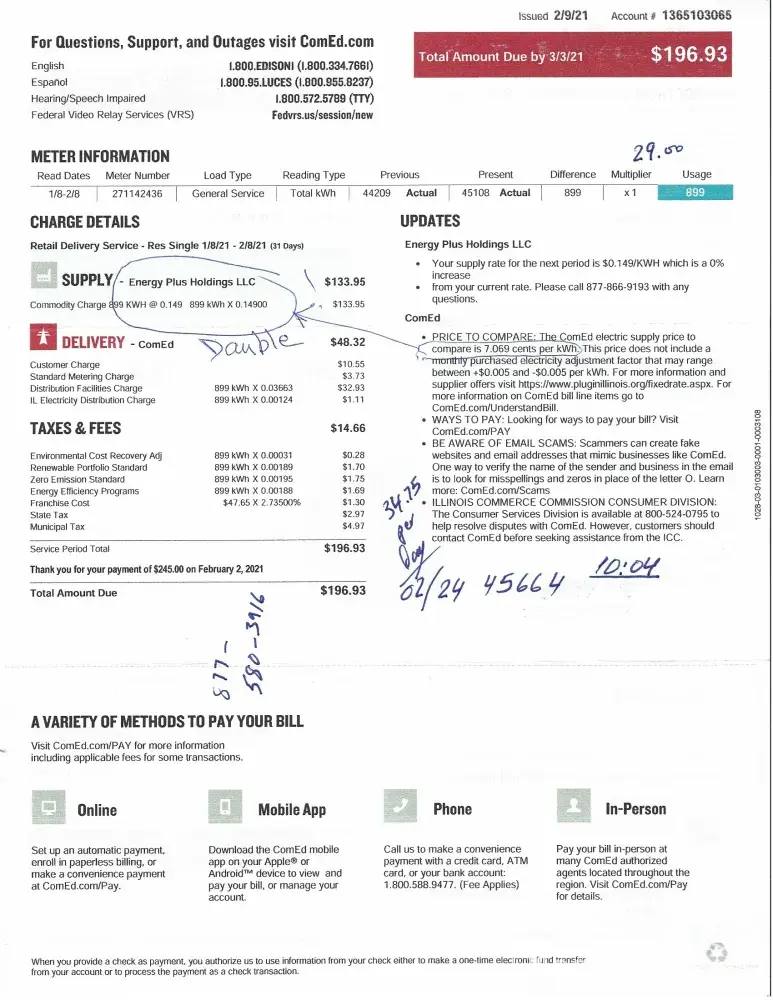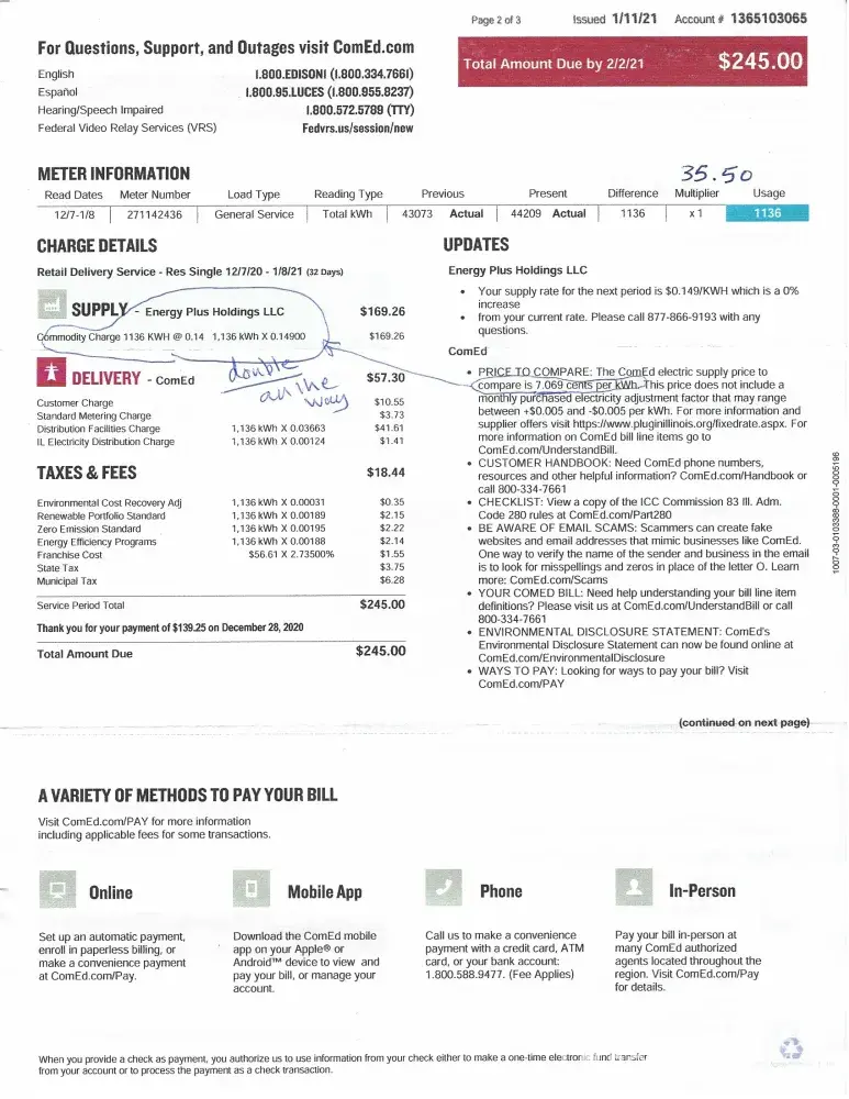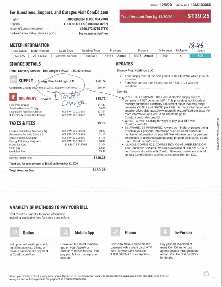 I immediately called Energy Plus and spoke to a supervisor; this is where it gets interesting. The supervisor was apologetic and explained, that recently their cost had spiked but generally speaking, over time everything averaged out and that they offered competitive electric supply rates. I now know, that this word, "competitive” is a word Energy Plus uses a lot to cover their deception and presumably, walk the fine line of legality. Their idea and anybody else’s idea of competitive is quite different. The supervisor I spoke with did a quick review of my account and told me that indeed, over the last year I had paid a bit more than my original supplier would have charged but the year prior to that I had done well. He assured me that he would look at the last year of my bills and see if "some adjustment could be made".