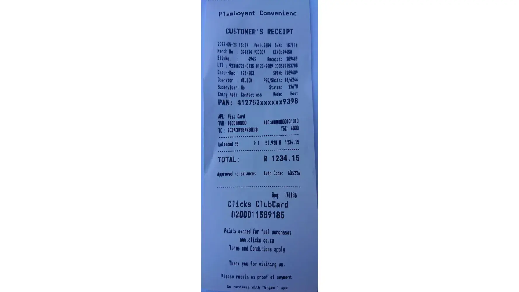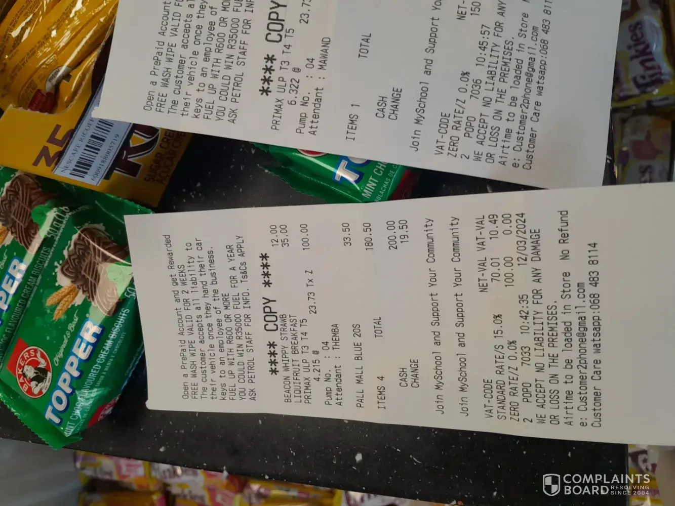 I contacted the manager at Flamboyant Convenience Engen and explained the situation and sent him a photograph, via Whatsapp, of my receipt.