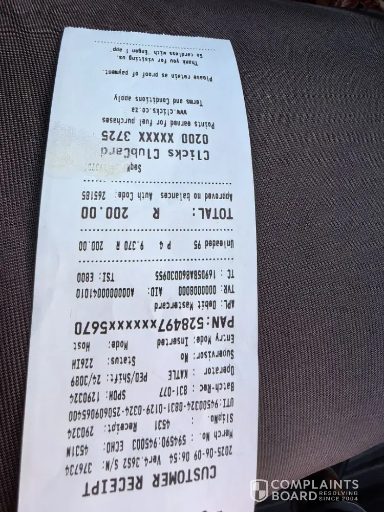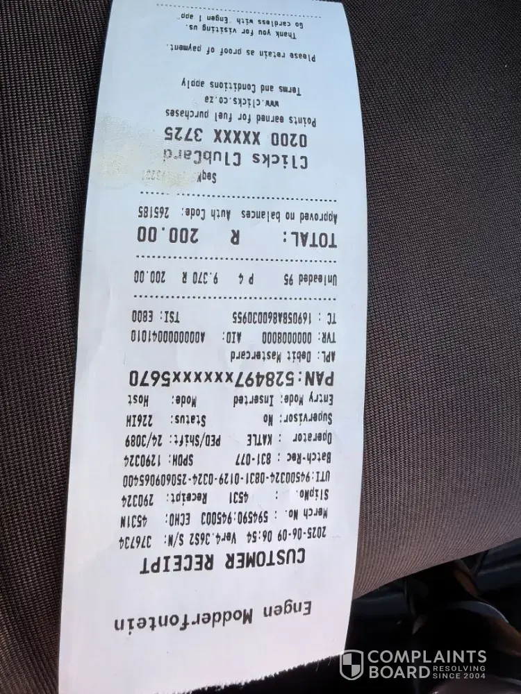 Today (30 March 2024) at about 17h00, I visited the Engen Filling Station in Sedgefield in the Garden Route, on the N2 to refill my car. I put in unleaded fuel to the amount of R746, 23. I was so disappointed that, not only was the Clicks points system inactive, but I could not be given a cash slip for the fuel that I have put in as well.
