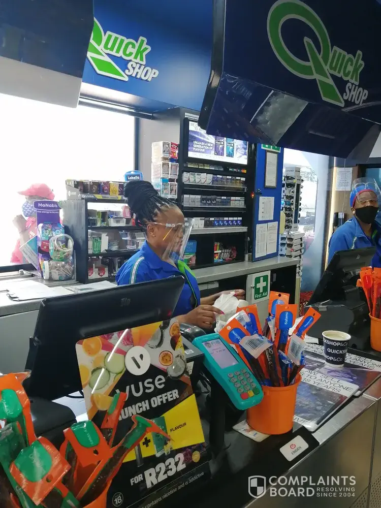 The the engen 1-stop just outside of empangeni on the freeway has got no COVID-19 compliance they have employees working at the cash register with no face masks just Shields using the excuse that these people are asthmatic. I addressed the matter to the manager who just turned and walked away saying that they will try to let her use a mask. Nothing was done. It is against the South African law not to use a mask and the asma excuse is false.