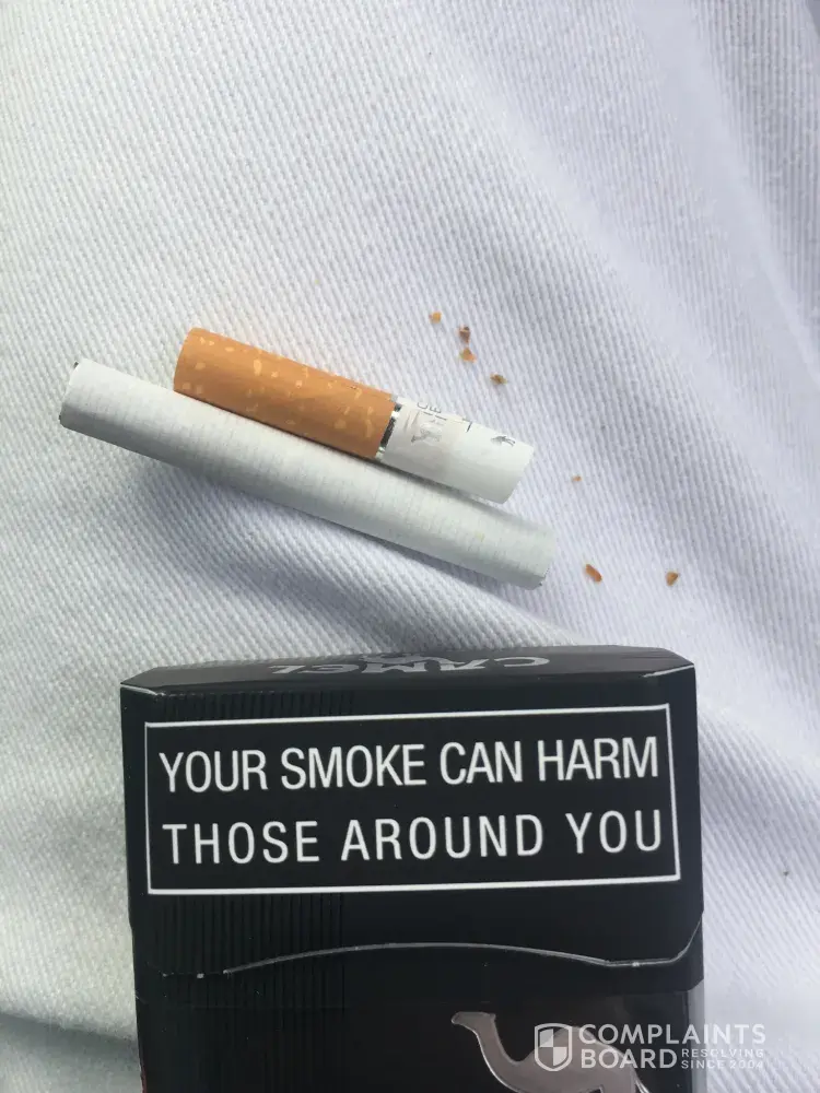 I opened a box of camel black, the first cigarette I pulled out was in half, separated at the filter (see attached images). This is not the first time I have come across such an issue. I highly suggest you fix this issue or I will be forced to go public on the matter. I spend a lot of money supporting your brand and it's utterly disturbing when you do not keep your standards to an ordinary norm. Broken cigarettes in a closed box is a sight a customer should never see, I would be understanding if this was the first time, but as I've said this is not the case.
