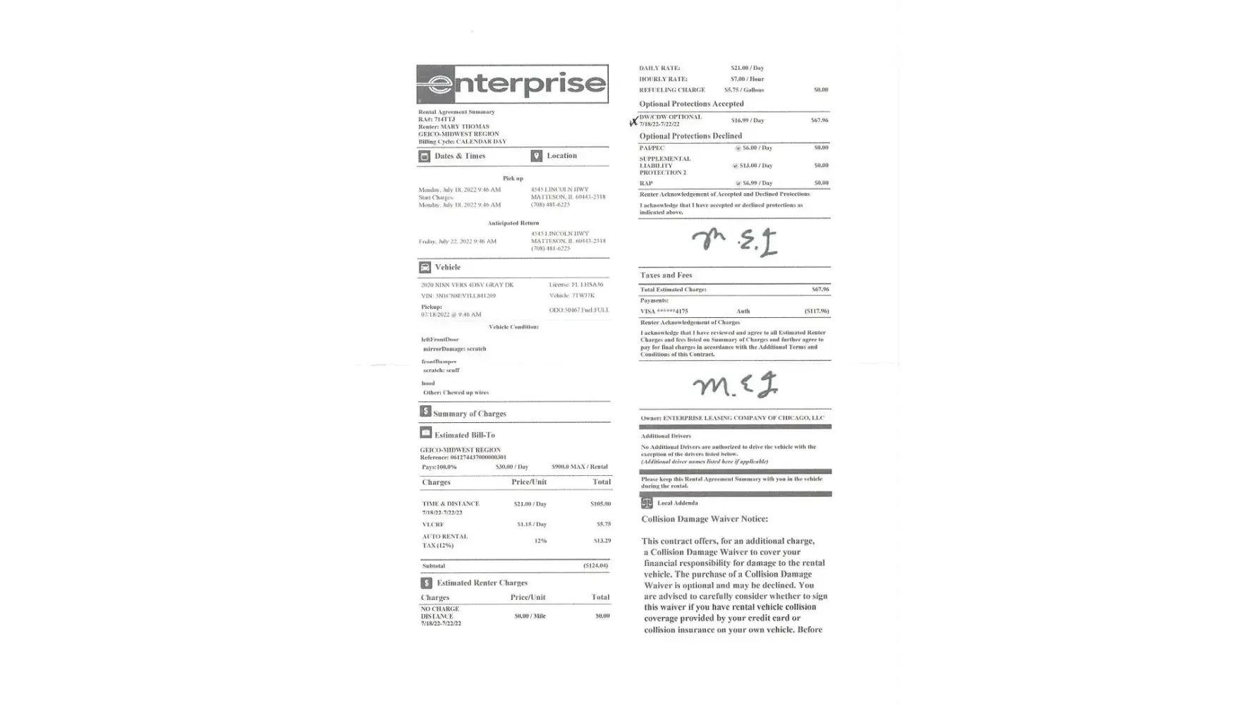 I had an accident back on August 7, 2022, and I am currently in my second rental vehicle from the Enterprise Car Rental location on 159th Street in Orland Park, Illinois.