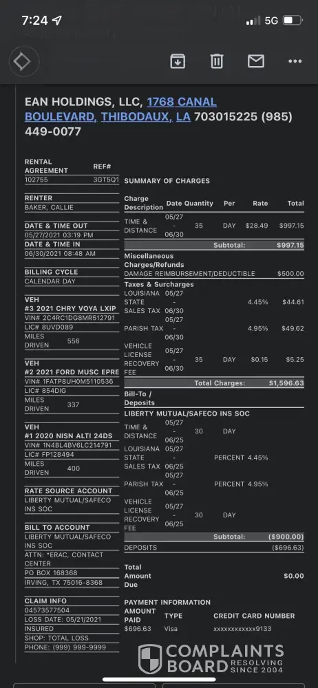 No one from enterprise has ever contacted me regarding this. I even called corporate office and they did nothing.