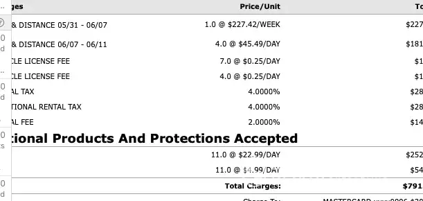 There were 5 scratches notes on my rental agreement (21RYSQ).