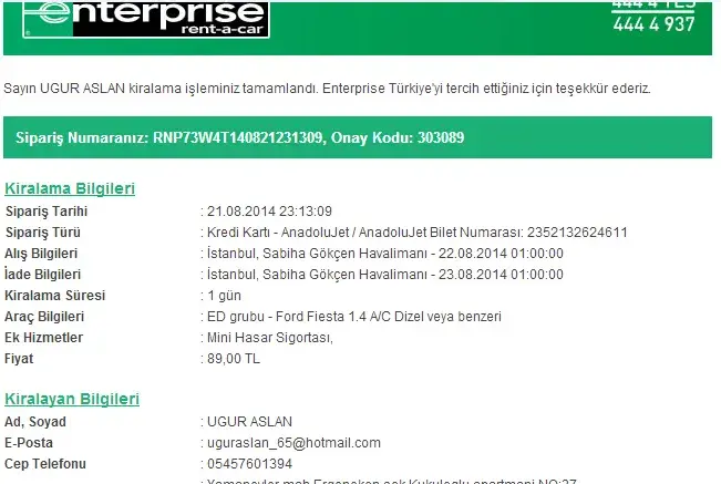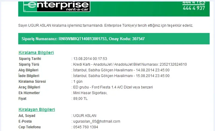 I have rented car twice via your company Enterprise. Everything was good until time to get deposit back into my credit card.But unfortunately after many times of calling customer service mentioning about the problem, they haven't solved my problem because of not being interested in problem.I rented on 15 of august and 22nd of August.i rented in Istanbul Sabiha Gokcen branch.So i dont advice SUCH A BIG company to anybody