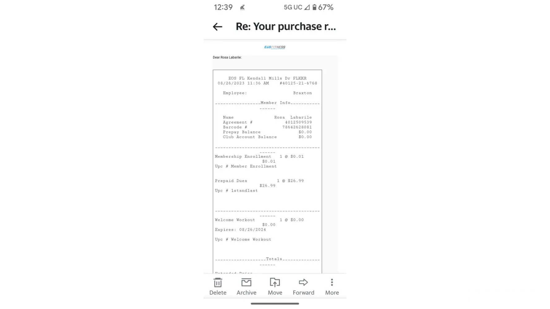 Desired outcome: I want my money back from EOS fitness. Someone to contact me at all