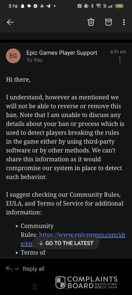 - While Epic Games has a high level of trust, our investigation has revealed that the company's complaint resolution process is inadequate and ineffective. As a result, only 0% of 14 complaints are resolved. The support team may have poor customer service skills, lack of training, or not be well-equipped to handle customer complaints.