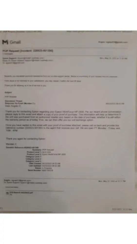 Once you have replied to this email with your proof of purchase attached, please call us back and provide this reference number [protected]) to the agent that receives your call. We are open 7 AM - 4 PM PT Monday - Friday.