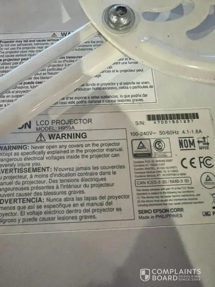 Desired outcome: New projector in place of defective projector that is under a year old