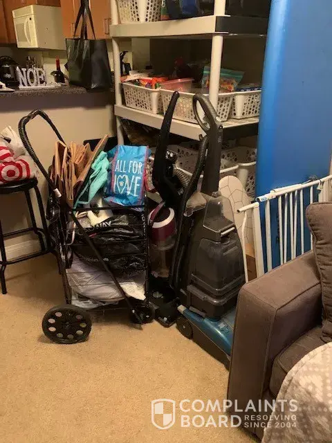 They moved my stuff to another empty space, but said that they needed to move it again by the next day, and asked where I wanted it to go! It has now been 4 weeks. The construction is still not done, I have huge holes, they think they can enter whenever they would like to finish, all my closet storage items are in the middle of my room, and I will a full sq foot of closet space when they are finished.