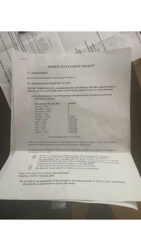 Approximately two weeks after Equity Residential accepted my check, I received a three-day notice to pay or vacate that Equity Residential staff pinned on my door. I was away for vacation, and the humiliating note stayed on my door until I got back in town.