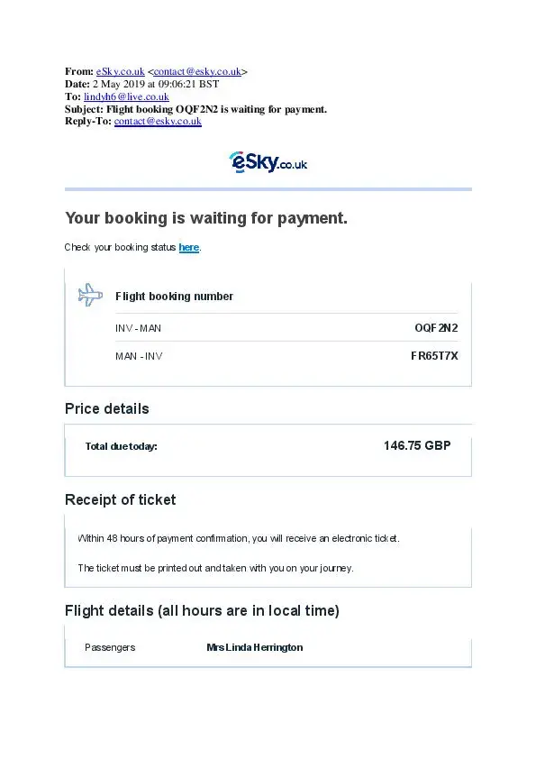 Please quote this when contacting eSky [protected]