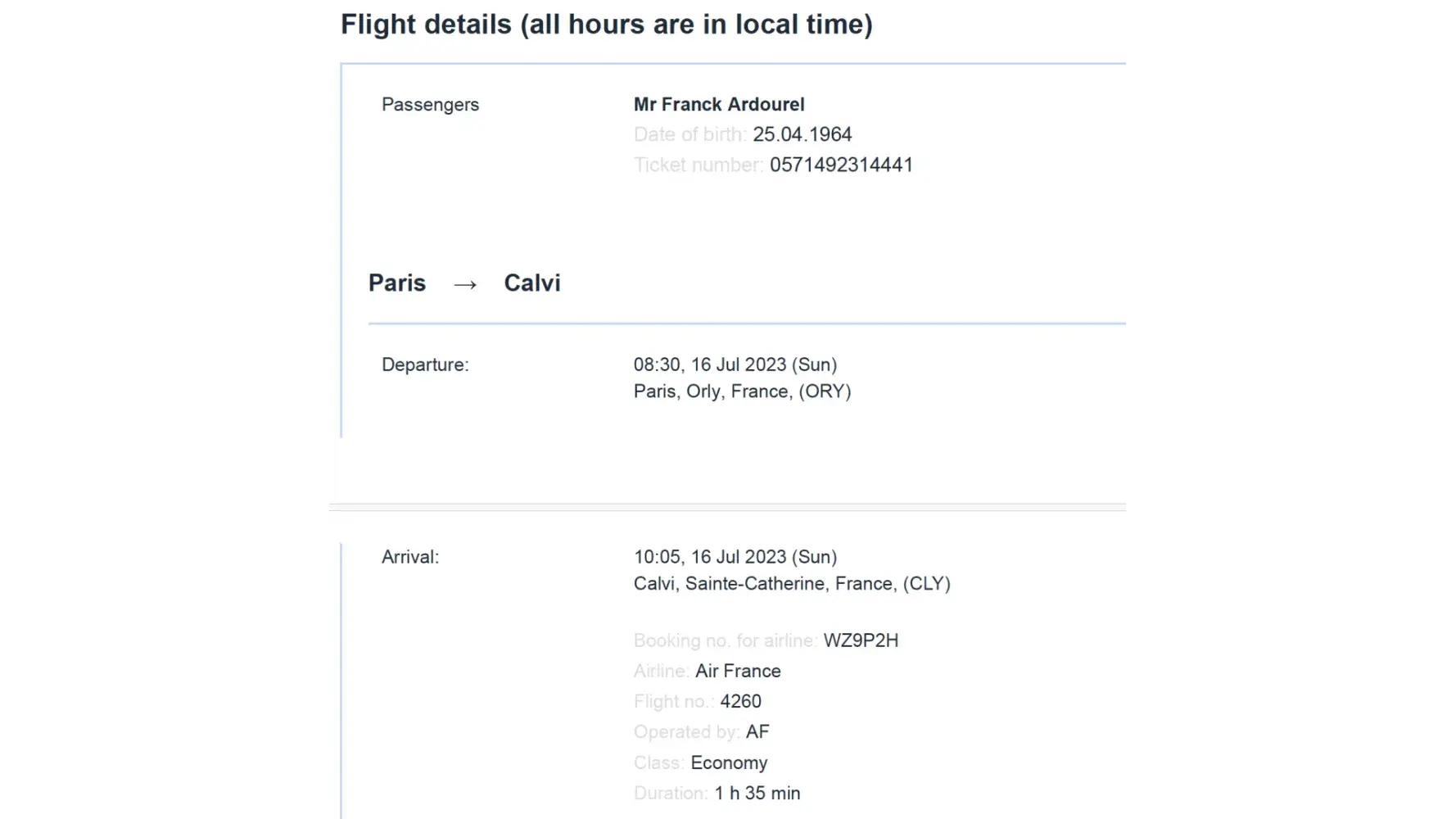 Flight details (all hours are in local time)