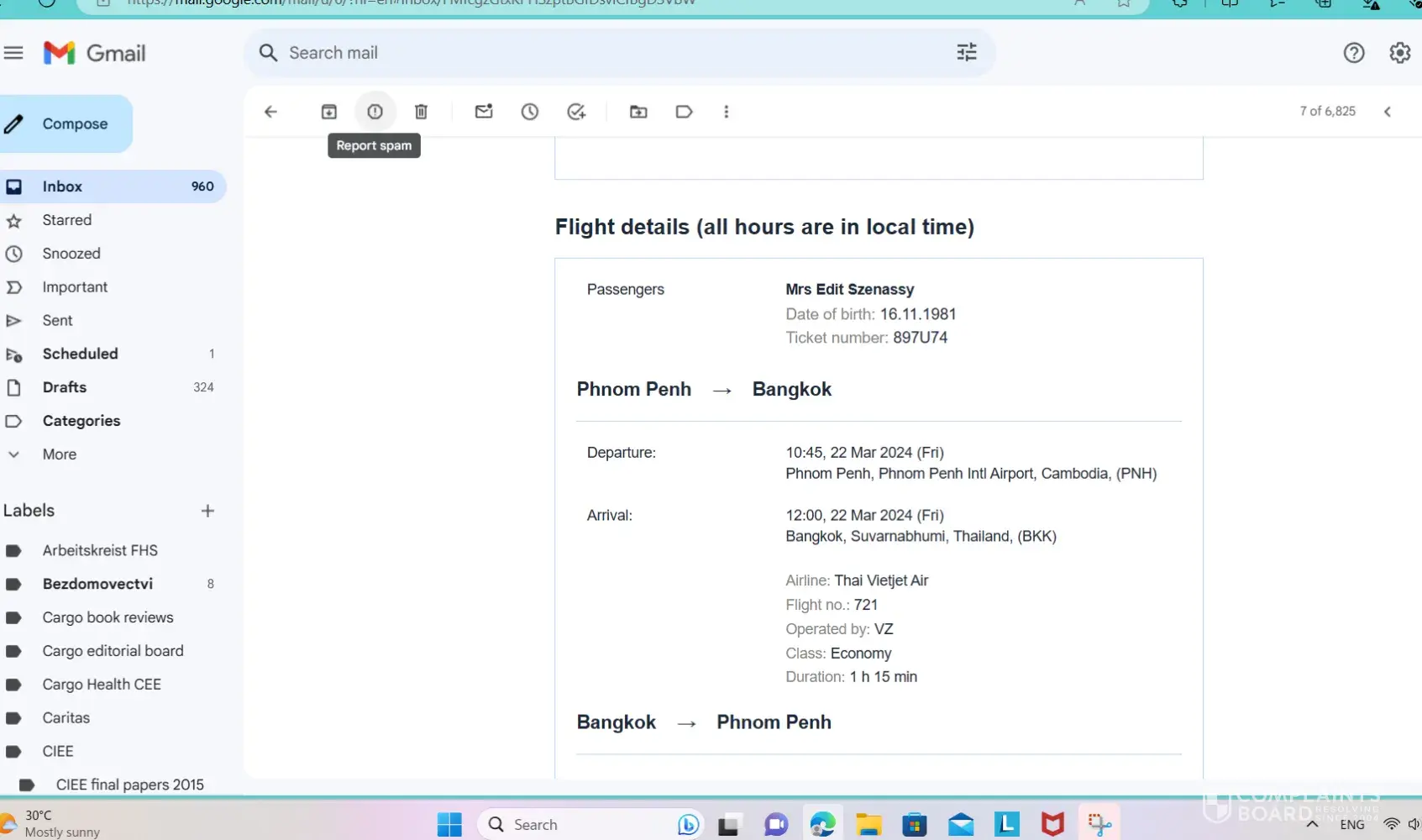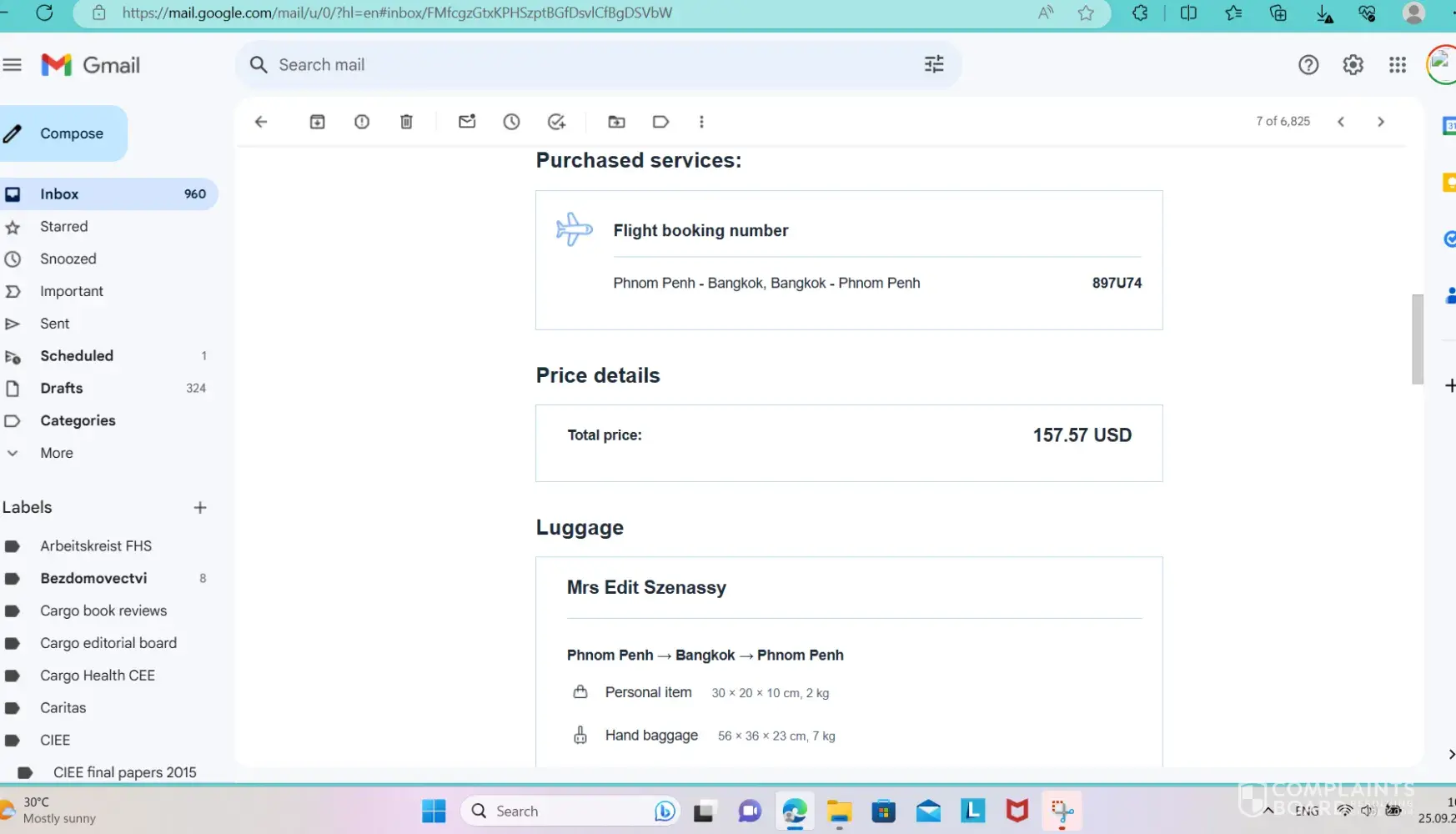 On Sept. 18, 2023 I booked a return ticket from Phnom Penh (Cambodia) to Bangkok (Thailand) for 22 September 2023 there and 24 September 2023 back (Friday/Sunday).