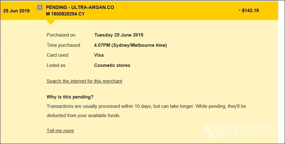 I signed for a Free Sample, while browsing on my fb their ad popped up and I was encouraged to sign up since it is FREE. i thought it was just a FREE SAMPLE, without reading all details, i confirmed an order which is thought i will just be paying the postage. then after weeks I was then shocked that they took almost 120AUD in my account. at first i thought they are culprit! a scam! before calling their cs i checked my email and my bad, it was my fault that I failed to read the "TERMS AND CONDITIONS" . i called the cs and hoping that they could reverse the charges, i admit it was my fault not reading all the details before placing my order, i was afraid that they will be charging me same amount every month. luckily! the person that i talked to explained their policy and since I love the product, she gave me a 70% lifetime discount and upto this date i am receiving the argan every 3months.