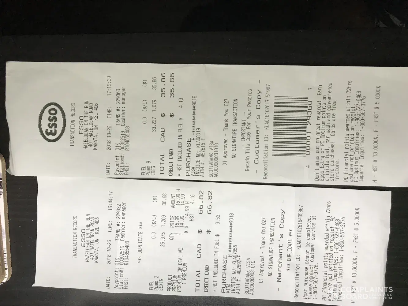 Esso is one of my family favorite gas stations for the past 26 years. However, last Friday the experience left a sour taste and I am reporting this complaint because it is not acceptable and it doesn't suit Esso's reputation in the marketplace.